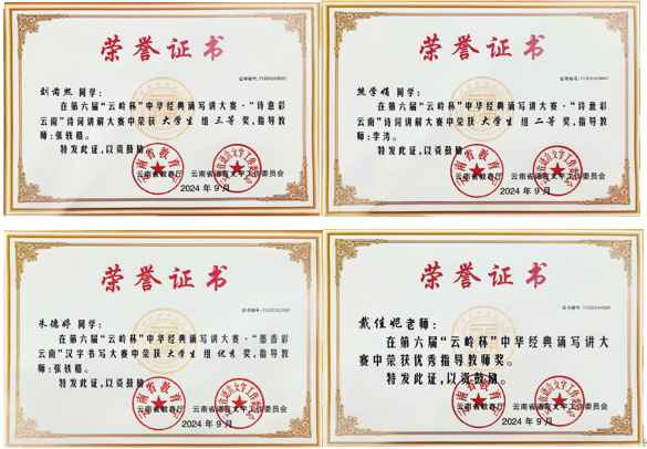我院学生在第六届“云岭杯”中华经典诵写讲大赛获得的部分奖项