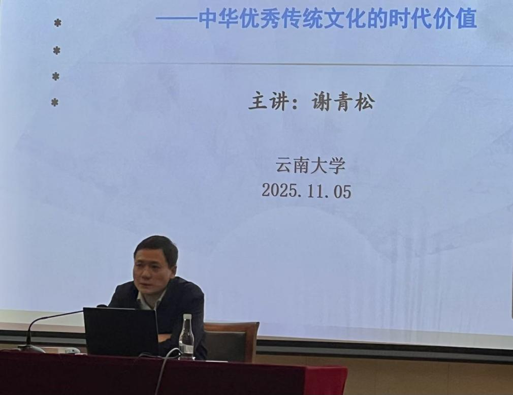 讲座中,伟德官网文学院研究员、博士生导师、云南省国学研究会会长谢青松教授围绕中华优秀传统文化的时代价值层层递进,深入阐释理解、阐释与传播优秀传统文化对增强文化定力与自信的核心意义。他通过什么是经典?如何读经典?并结合儒道思想互补特性,从“进退自如、修己安人、穷通皆乐”三方面,探讨传统文化对个人生命品质、价值观的滋养及跨文化沟通中的独特作用。整场讲座紧扣学院培养国际中文教师、传播中华文化的核心使命,为师生呈现了一场兼具思想深度与实践意义的文化盛宴。