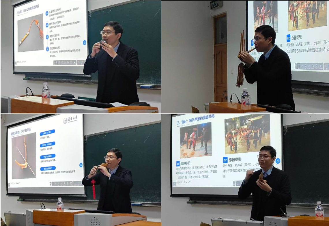银杏飘金时分,我院来华留学生“理解中国”系列讲座又开启了新的一讲——《云上乐响:云南民族器乐的当代表达与舞台实践》。11月28日晚,来自我院20多个国家的来华留学生与艺术与设计学院、文学院的部分师生齐聚东陆园,共同聆听云南民族音乐的悠远回响。